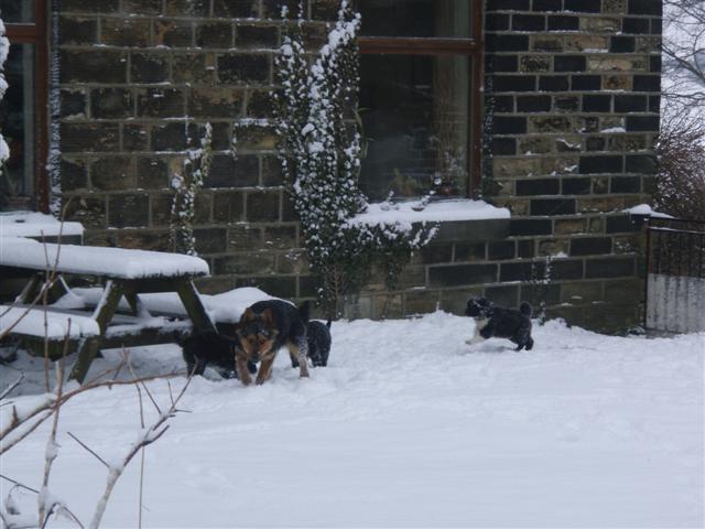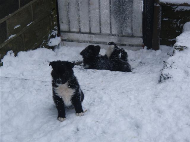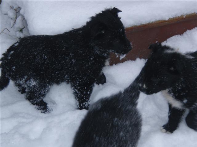 Puppies in snow - 7 weeks